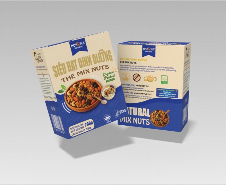BOBONA là một thương hiệu mới xuất hiện gần đây nhưng đã đem lại ấn tượng tốt cho người tiêu dùng về sản phẩm chất lượng, hàm lượng dinh dưỡng cao có trong sản phẩm như: chất xơ cao, vitamin, Lipid, Natri, Calci, Kali, Sắt, Kẽm và protein từ thực vật hỗ trợ ăn kiêng, giảm cân. Đặc biệt, sản phẩm không chứa chất bảo quản, tốt cho sức khỏe nên rất được lòng nhiều khách hàng khó tính.